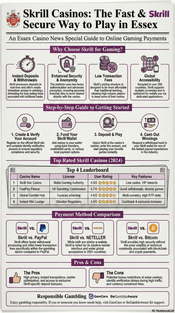 | Skrill Star Casino | Malta Gaming Authority, SSL encryption | 4.8/5 | Instant deposits, live casino, VIP rewards |
