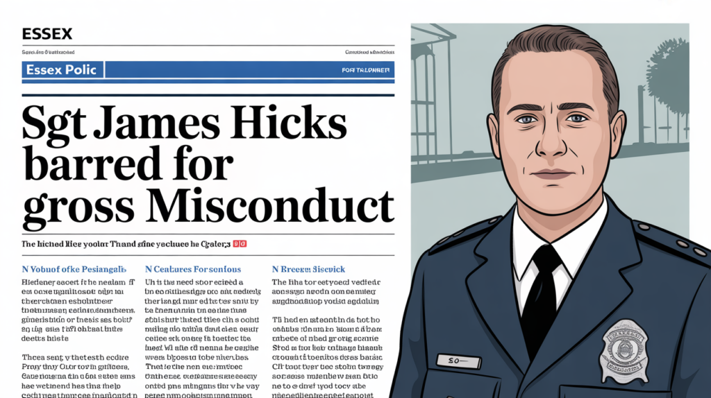 Essex Police has concluded an accelerated misconduct hearing concerning the conduct of former Temporary Sergeant James Hicks, confirming that his actions amounted to gross misconduct. The outcome, published on 25 March 2026, underscores the force’s commitment to maintaining the highest standards of professional behaviour among its officers. Had Hicks not already resigned, the panel ruled that he would have been dismissed without notice and subsequently placed on the Police Barred List, preventing him from future employment in any policing role in England and Wales.