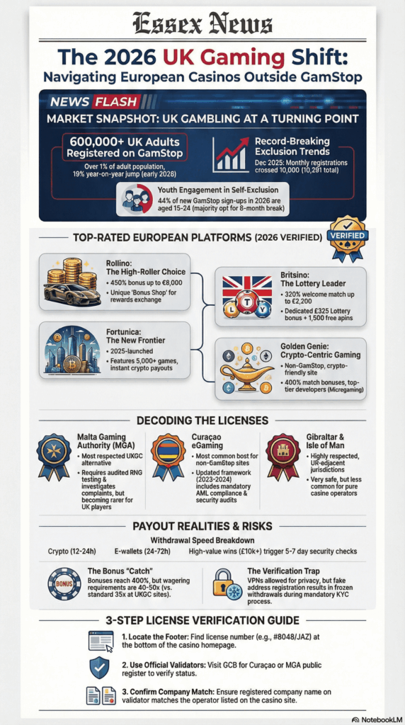 Yes, technically you can. GamStop only blocks UKGC-licensed sites. European casinos operating under MGA, Curaçao, or other licenses aren’t connected to the GamStop database and don’t check it. Whether you should depends on why you signed up for GamStop in the first place. As of January 2026, over 600,000 UK adults are registered, and 78% report it’s working for them.\