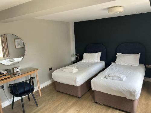 Rooms are boutique-minimalist: super-king beds, marble bathrooms, and Roberts radios, with views over the market square. The Haywards restaurant, led by chef Sam Hayward, earns its Bib for inventive British plates—suckling pig with black garlic or Dedham Vale beef tartare—using hyper-local suppliers. Breakfast is continental with house-baked pastries.