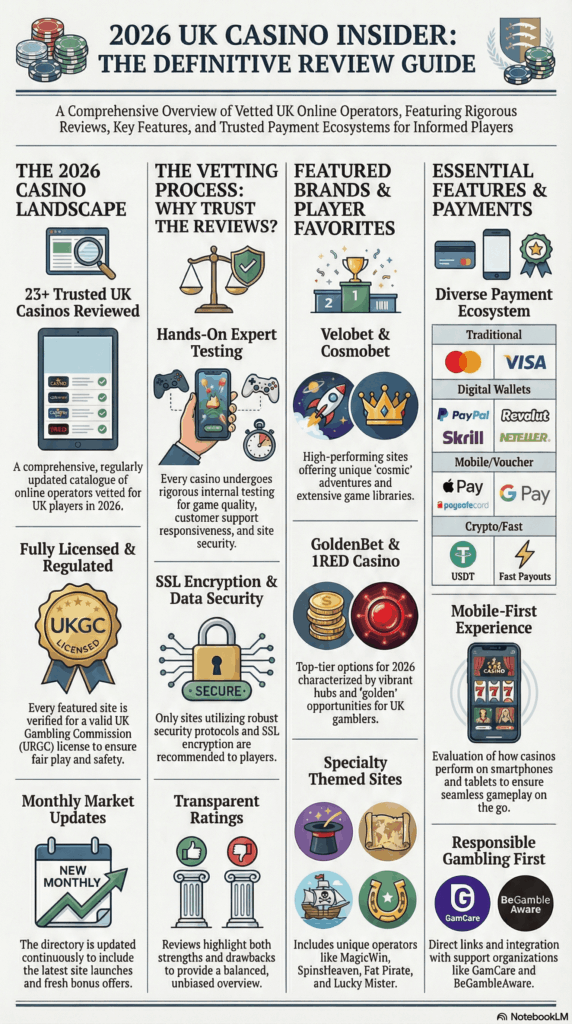 Looking for the best online casinos in the UK? Our comprehensive casino review catalogue is your trusted source for finding safe, licensed, and rewarding gambling sites. We feature in-depth, unbiased reviews of 23+ UK-friendly casinos, with new operators added regularly to keep you ahead of the game.